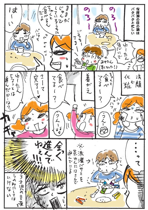 2014年03月19日 朝の風景 カテゴリ:育児の話 ひっさっしぶりにマンガ更新。 も~ね~、新生活に向けて、忙しすぎて… 今朝のことを描きました。 絵が汚くてスミマセン! ですよね~。 「育児の話」カテゴリの最新記事 コメント コメントフォーム 名前 コメント 評価する リセット リセット 顔 星 投稿する 情報を記憶 トラックバック シックさんのイラストを手がけました!久々のサロン