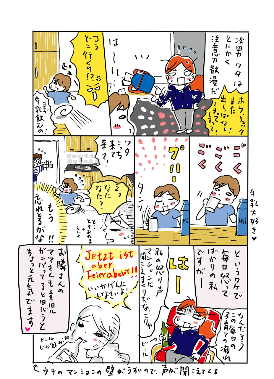 2018年11月04日 ヌカにクギ次男 カテゴリ:ドイツ育児育児の話 海外暮らしを発信していると、毎日非常に刺激的に思われるかと思いますが、、、、基本的には多分毎日日本に住んでるお母さんたちと同じようなことで怒っております。多分。。。しかし2人ともではありますが、次男は特に「ぬかにクギ」タイプ。なんなのでしょう、このいくら注意しても全く気に留めない感じ。まあ私も鳥頭なんで子供のことは言えないんですがね。 「ドイツ育児」カテゴリの最新記事 コメント コメントフォーム 名前 コメント 評価する リセット リセット 顔 星 投稿する 情報を記憶 ドイツのハロウィン夫の誕生日とStammtisch