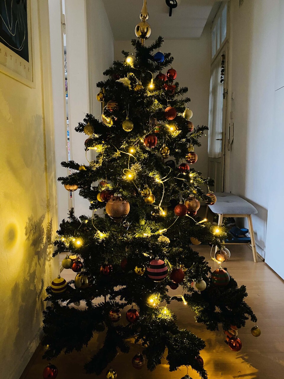 我が家はケチなので来客がある時以外はライトを消していますが(笑)、クリスマスツリーも今日はせっかくなのでライトアップさせています。