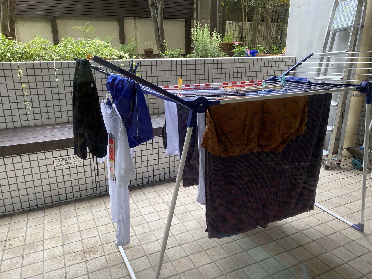 洗濯物を叩いて広げてどんどんかけていくだけなんで相当な時短になります。あと日本式の物干し竿より場所を取らなくて軽い、しかも折り畳めるので移動も簡単。部屋干しもできる!ということでこれは結構オススメです。